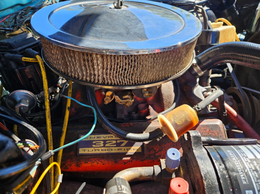 Step back into the golden era of American cruising with this 1962 Chevrolet Impala, finished in dazzling Twilight Turquoise Blue with a contrasting White Top and Skyline Blue bench seat interior. A true California-type cruiser, this Impala was built to turn heads on the boulevard or down by the beach. Under the hood sits Chevy’s dependable 327ci Turbo Fire V8 engine paired with the smooth-shifting Powerglide automatic transmission—an effortless ride that defined the 60’s.
